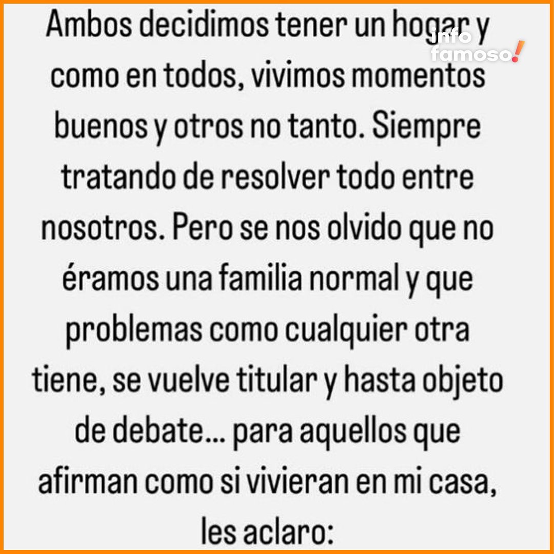 «He pasado meses reflexionando sobre muchas cosas. Sé que he herido sin querer a las personas que más amo», comentó Elizabeth. «Mis hijos y el padre de mis hijos merecen que yo aclare ciertas cosas que en su momento se dijeron y se tergiversaron. Sin intención de volver a lo mismo, necesito aclararlo para estar con mi conciencia tranquila. Nadie mejor que yo sé lo que he vivido, lo que he sentido, y lo que he pasado. Y si a pesar de nuestros problemas, él es el hombre que siempre voy a amar y desear lo mejor. Si mi gran defecto es amarlo al padre de mis hijos, prefiero que ese sentimiento sea de amor y no odio.»