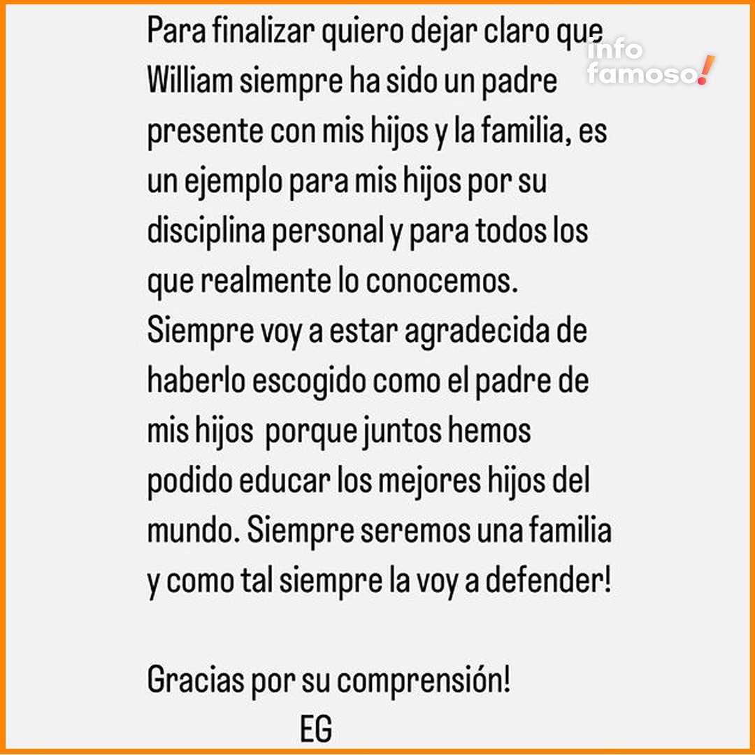 Con este mensaje, Elizabeth Gutiérrez busca poner fin a las especulaciones y malentendidos que han rodeado su relación con William Levy, destacando el amor y respeto que aún siente por el padre de sus hijos, y abogando por una narrativa de paz y comprensión.