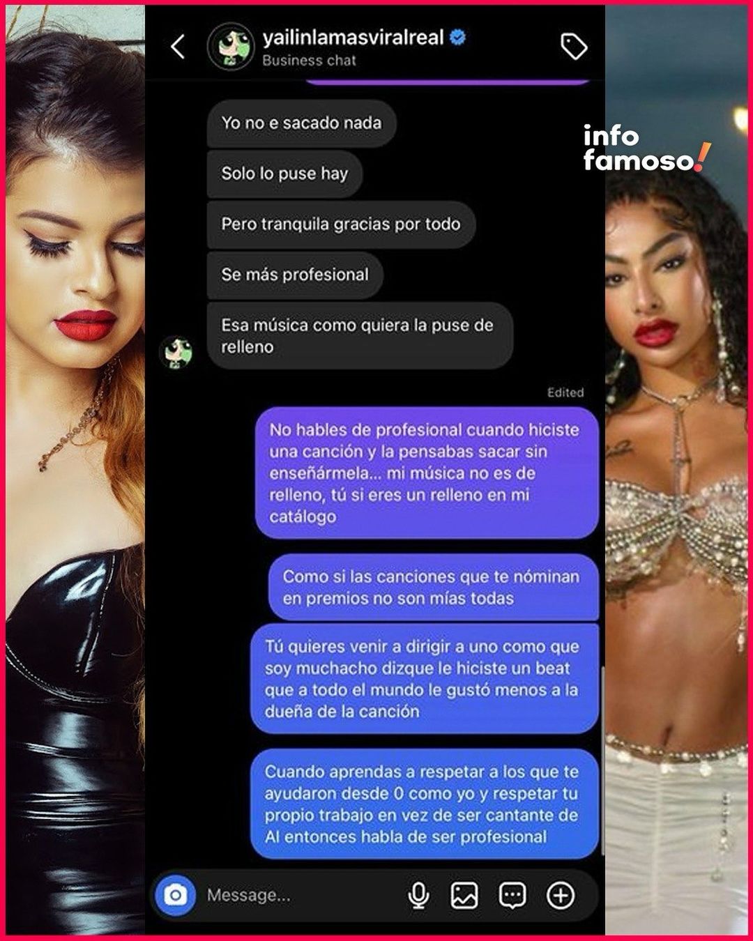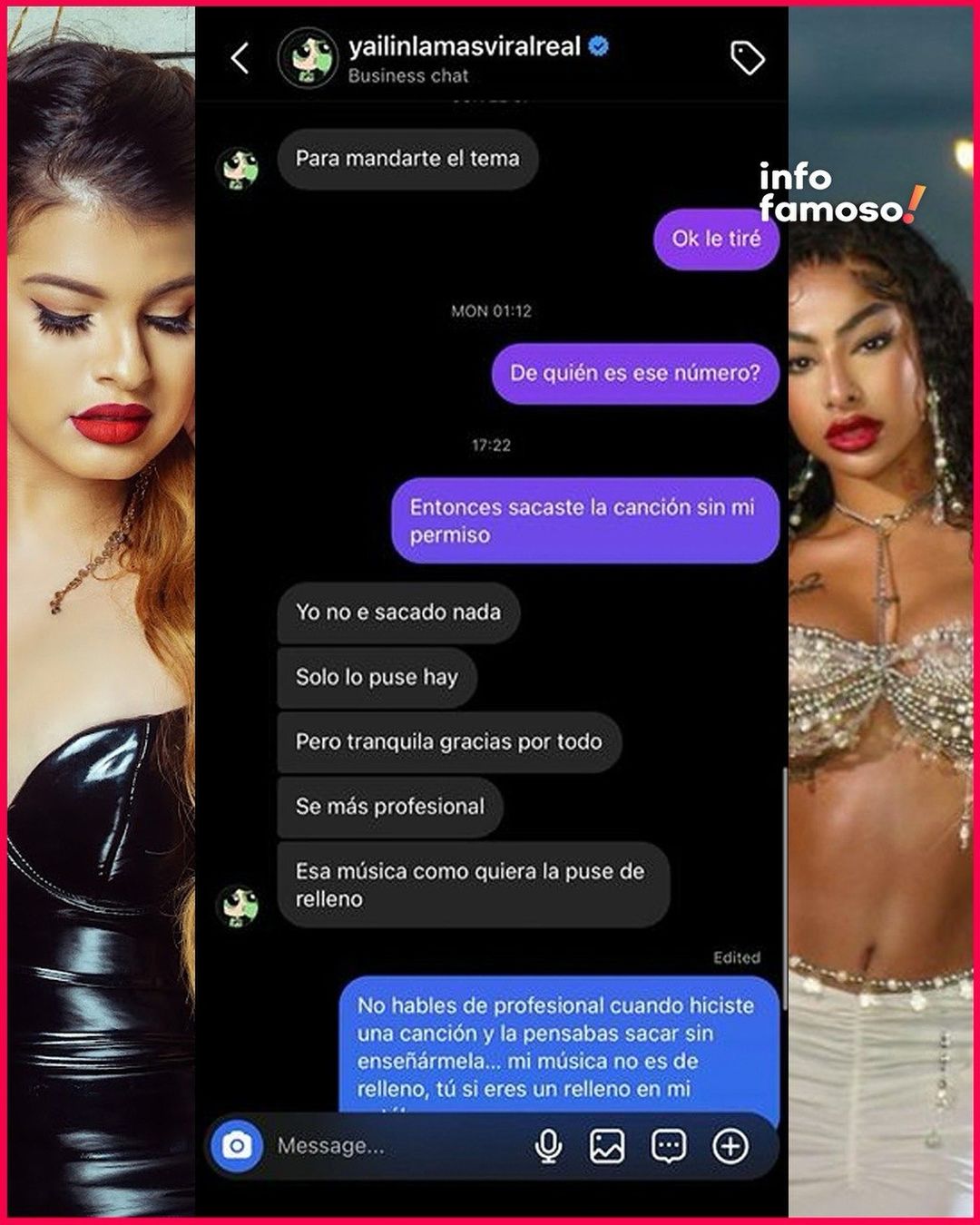 En un giro inesperado de los acontecimientos, se han filtrado una serie de conversaciones y audios en los que se escucha a ambas artistas en un conflicto por una canción escrita por Melymel. En estas grabaciones, Melymel acusa a Yailin de utilizar una pista sin su consentimiento para una de sus canciones, mientras que Yailin se justifica diciendo que la canción solo tenía letras y que se le hizo una pista que le gustara.